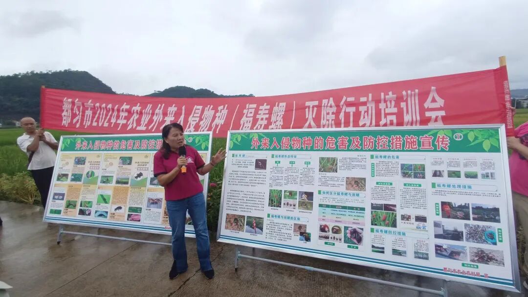 在都匀进行的“2024年农业外来入侵物种(福寿螺)灭除行动培训会”参会人员不仅有都匀市各级农技人员参加,还有当地的农户也积极的现场观摩学习。