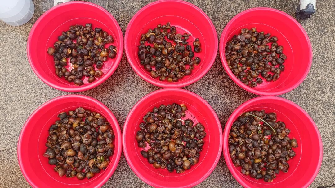 灭除行动现场一盆盆诱集到的福寿螺也是再次为大家实际验证了中捷四方食诱技术的应用效果。